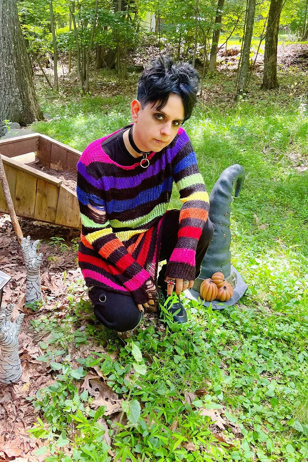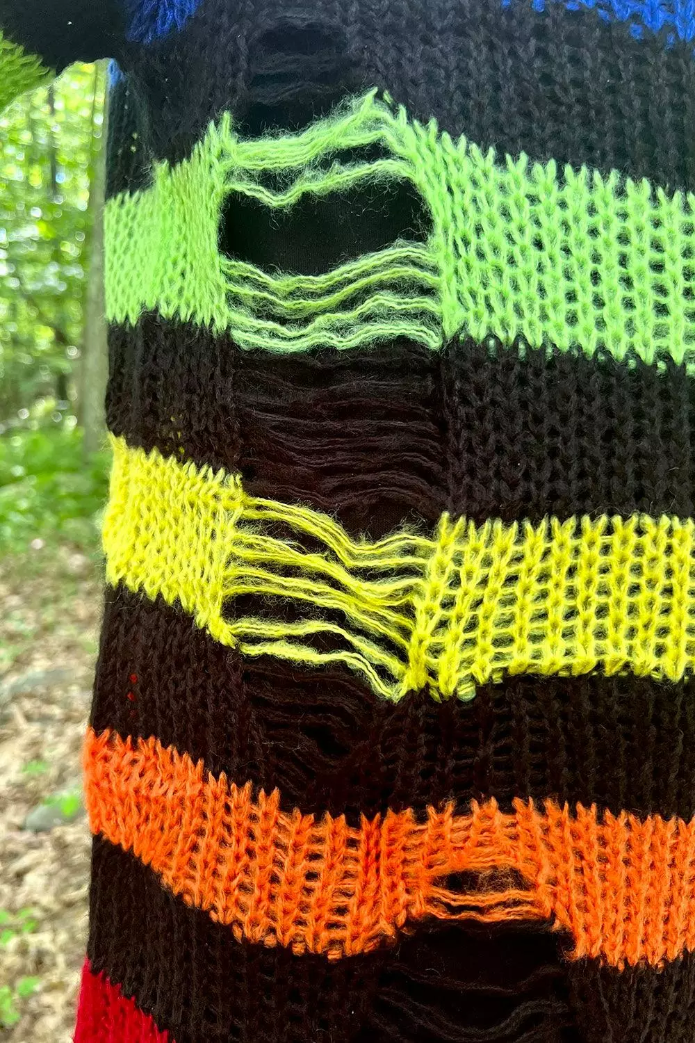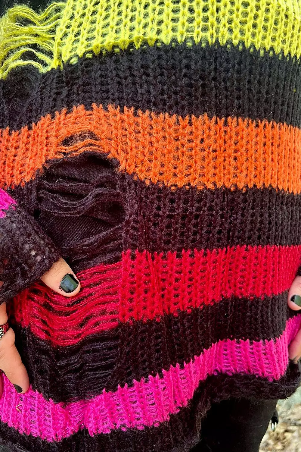Black Rainbow Striped Distressed Sweater
