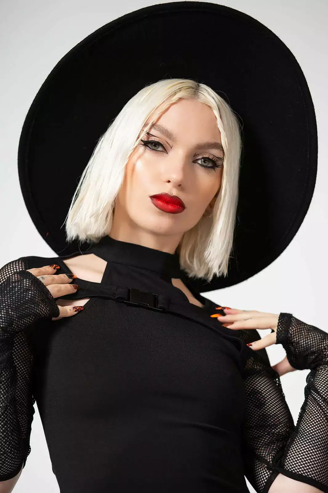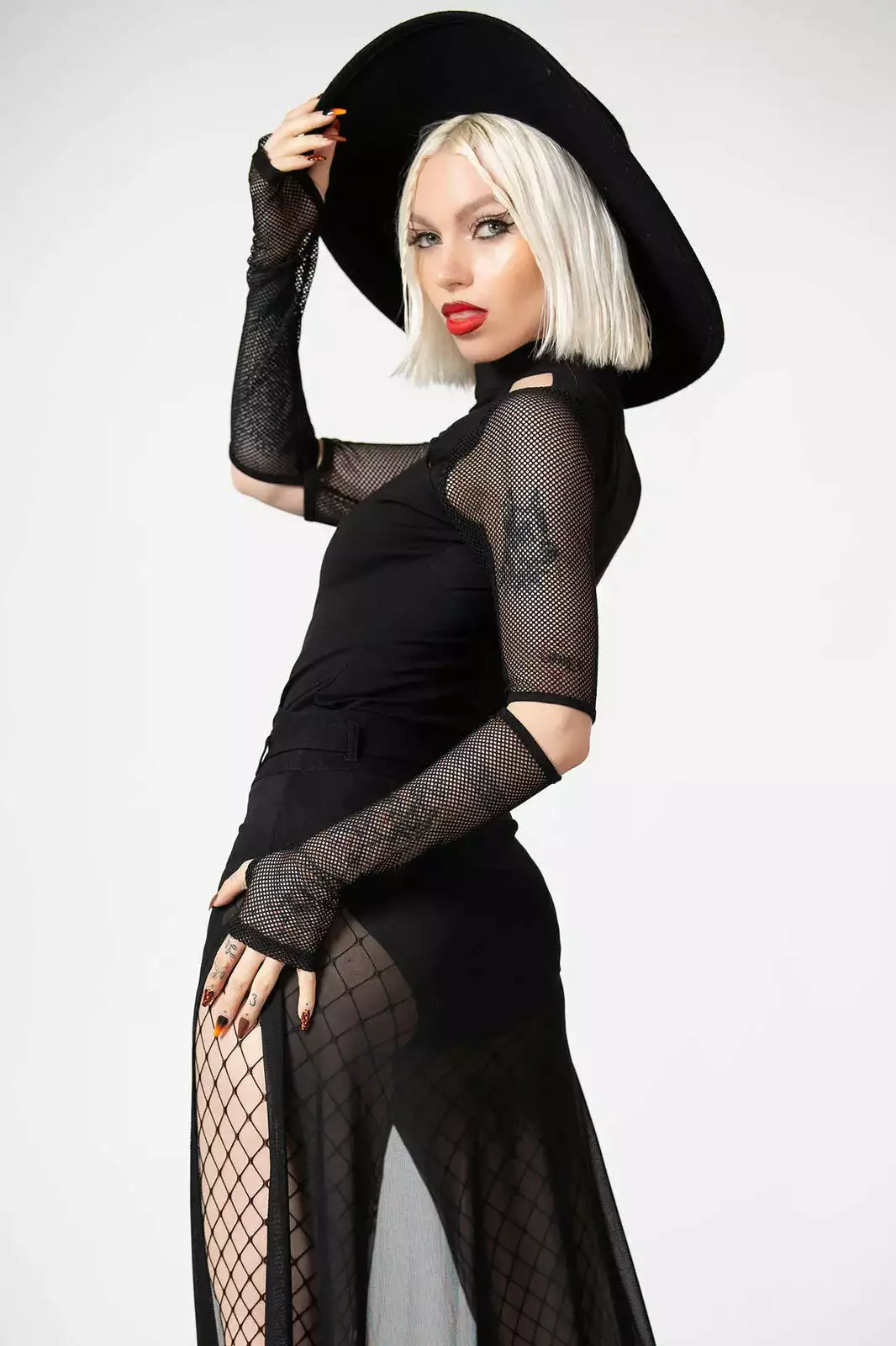 – Statement fishnet sleeves.