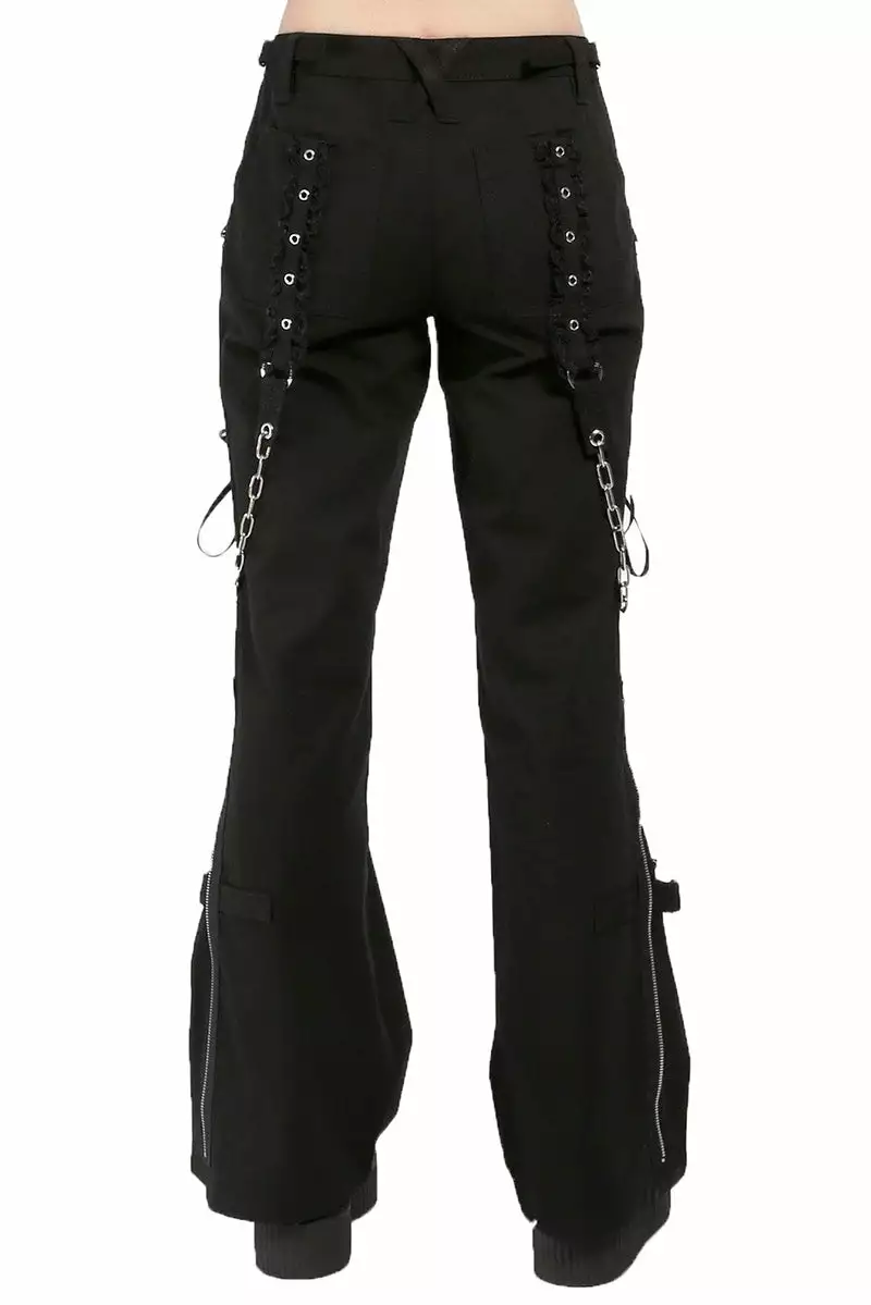 Catch glances and break hearts in these flared AF Tripp pants, designed to summon sweet spooks to your style. Corset details with black ribbon lacing possess the sides of these gothic lolita pants—ruffle accents and leg zippers haunt the flared fit. Finished with bondage straps, as baddie and beautiful as you.