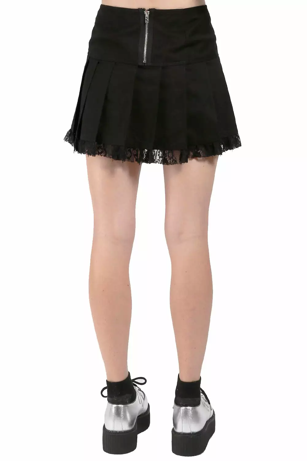 Conjure gothic romance to your alt style in this pretty pleated skirt, sexy and sweet as you! Made of 100% quality cotton, this gothic schoolgirl skirt features corset details and black ribbon lacing down the front. Catch glances and break hearts in the ruffle hem and frill accents. Finished with a discrete back zip closure.