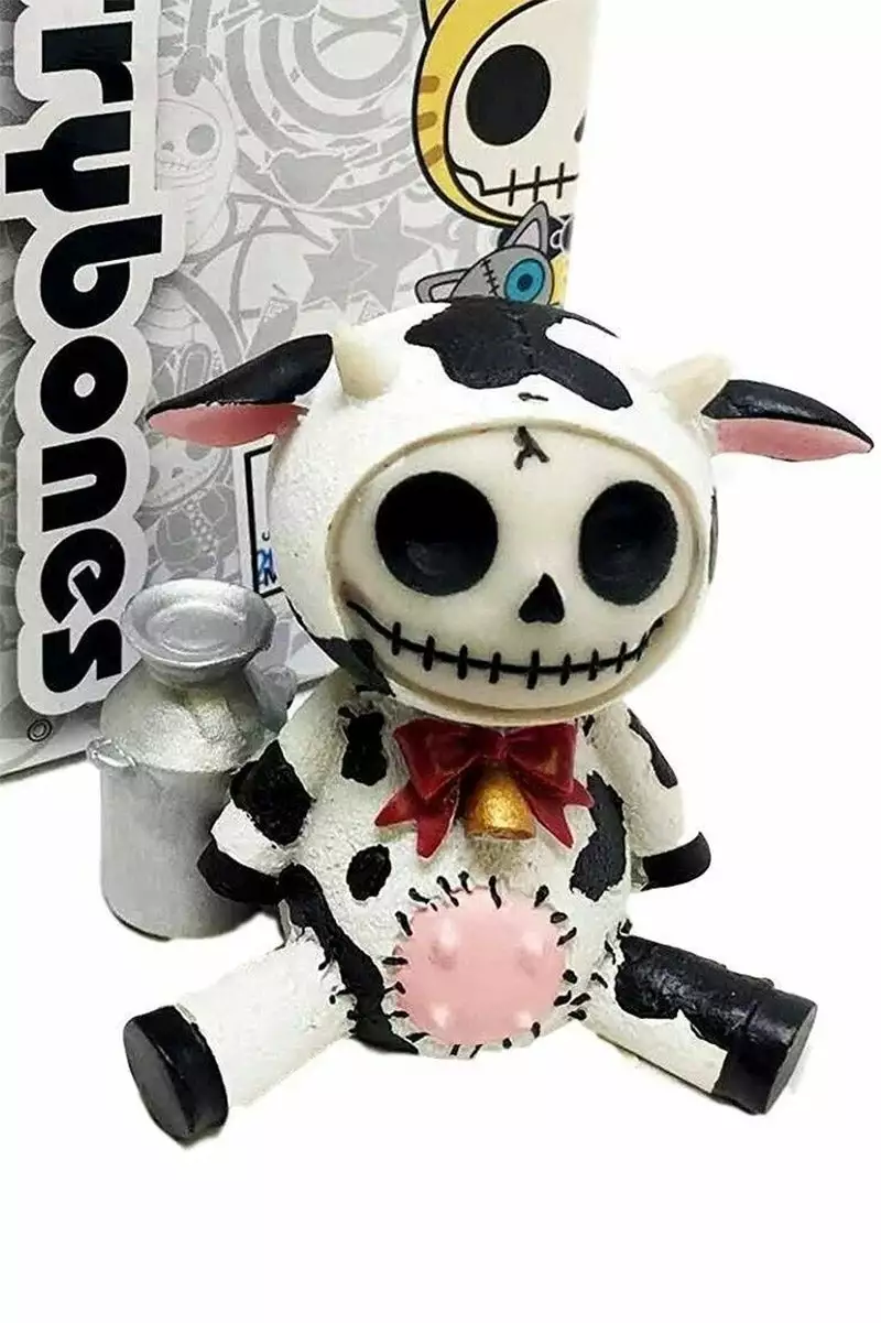 Tell your boo you udderly adore ’em with Moo Moo the Cow! Constructed of quality resin, this spooky statue features a skeleton dressed up in a stitched-up cow suit! With a red bow, cowbell, and teeny-tiny teats, Moo Moo is dying to creep out your crypt!
