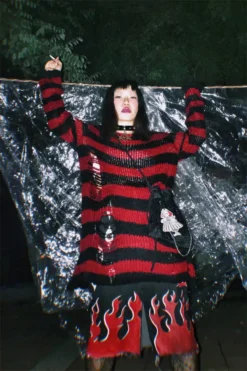 Red/Black Striped Distressed Sweater