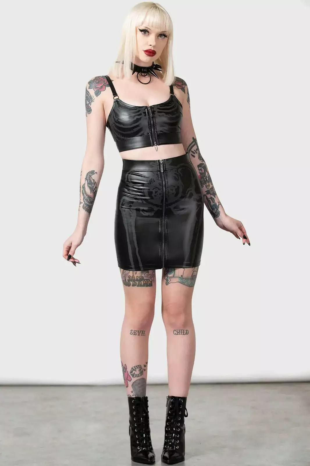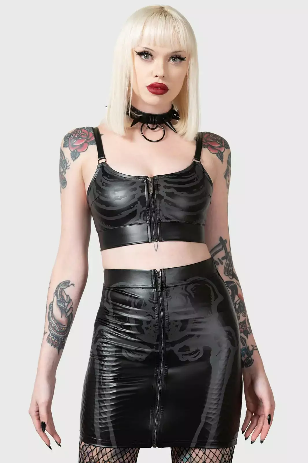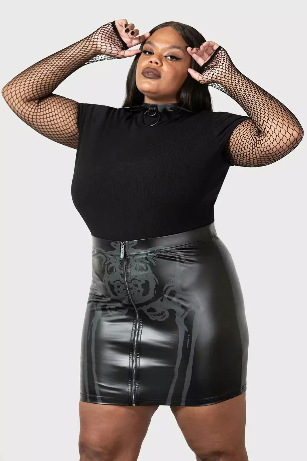 – Wet look, light stretch fabric.