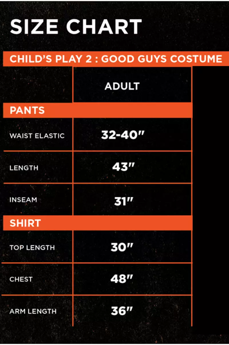 ![TRICK OR TREAT STUDIOS Child's Play - Good Guy Costume [Adult] 7 TRICK OR TREAT STUDIOS Child's Play - Good Guy Costume [Adult] -Creepsville Horror Shop childsplay2 goodguys size chart 1](https://www.kreepsvilleshop.com/wp-content/uploads/2023/09/childsplay2-goodguys-size-chart_1-247x371.webp)