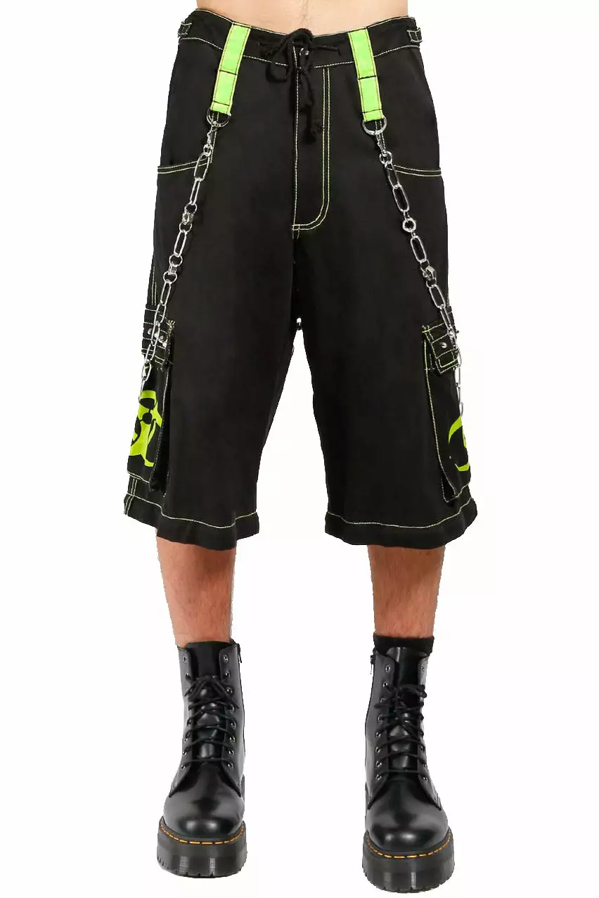 Survive the apocalypse in these sikk baggy bondage pants, posessed with lime green accents! With silver hardware and chains all over, these killer Tripp pants are FIRE. Demand command in the statement biohazard symbols on the sides—keep it comfy in the drawstring waist. Zip them off into shorts when the days get hella hot.