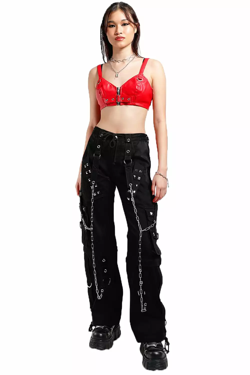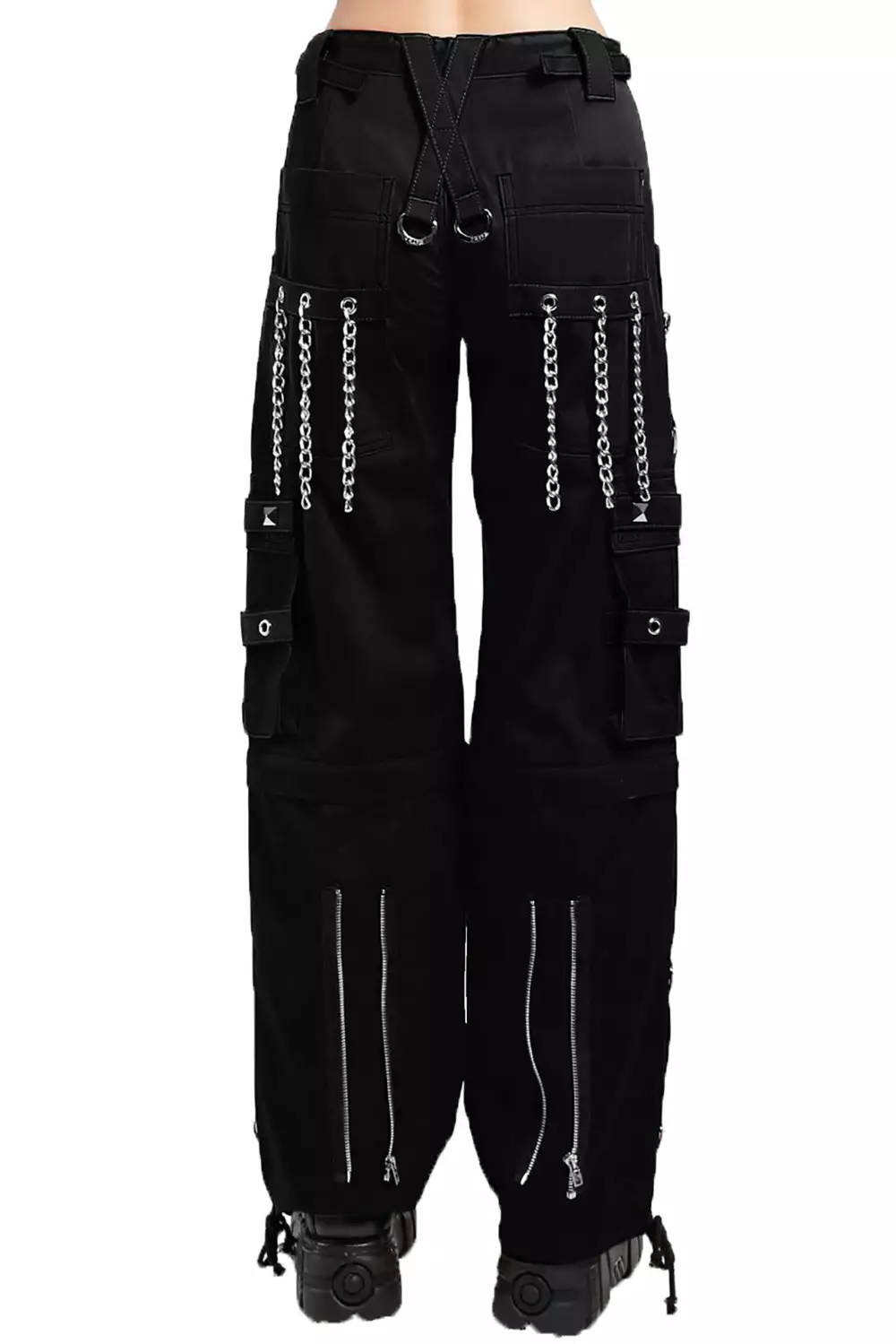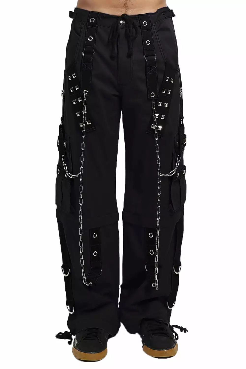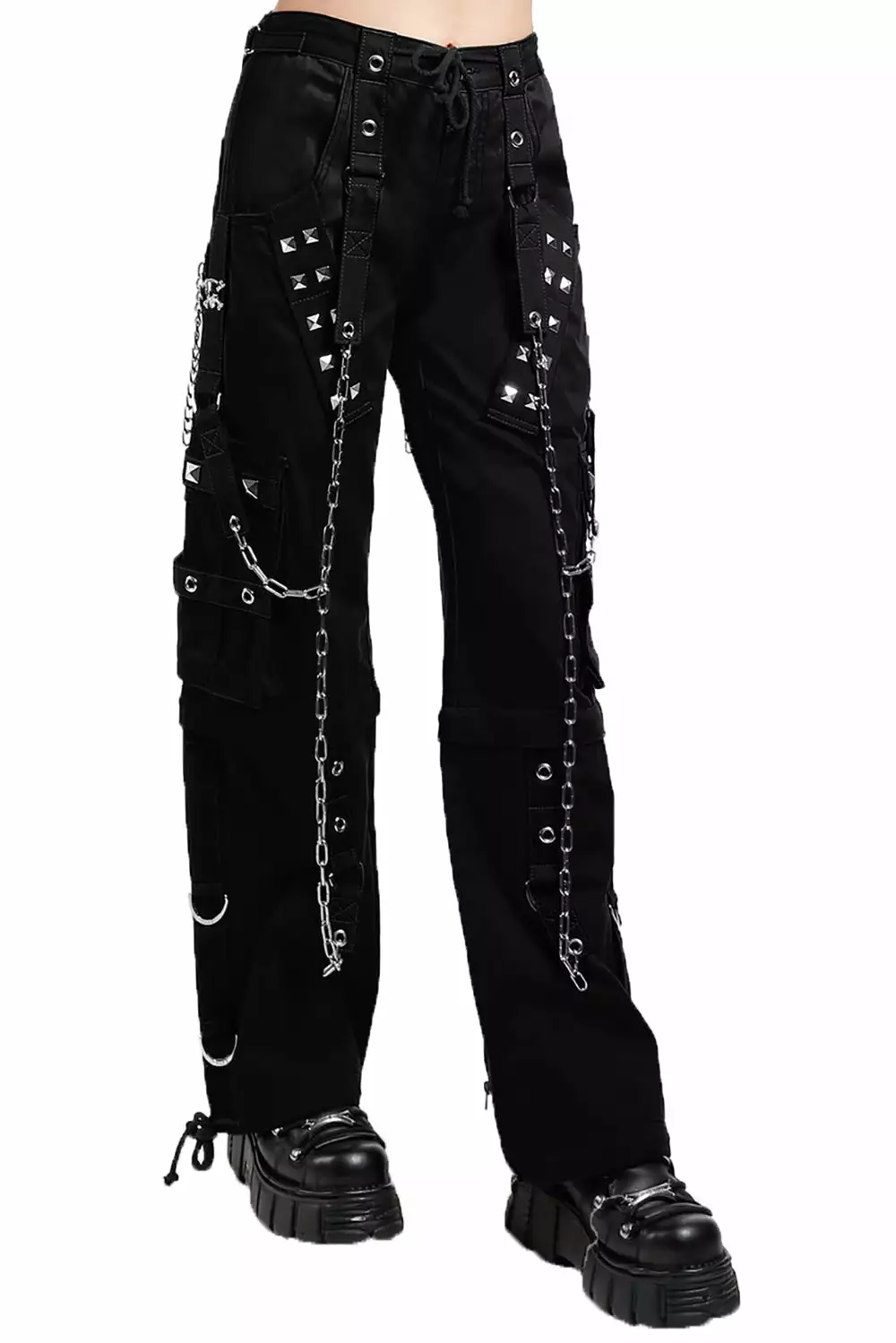 You own the Underworld in these baddie street goth pants! Black and baggy, these statement Tripp pants feature removable chains, pyramid studs, and metal eyelets. Keep it comfy in the adjustable drawstring waist and ankles; zip off the pant legs to transform these pants into shorts! Finished with deep pockets—perfect for carrying your wallet, phone, smokes, and tears of your enemies.
